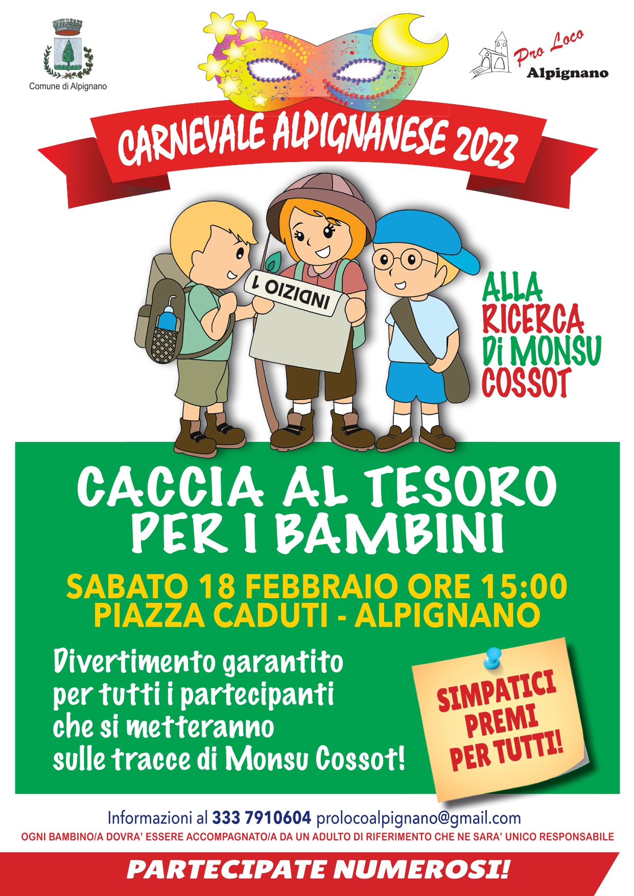 Vi aspettiamo sabato 18 febbraio alle 15 in piazza Caduti. Premi per tutti!