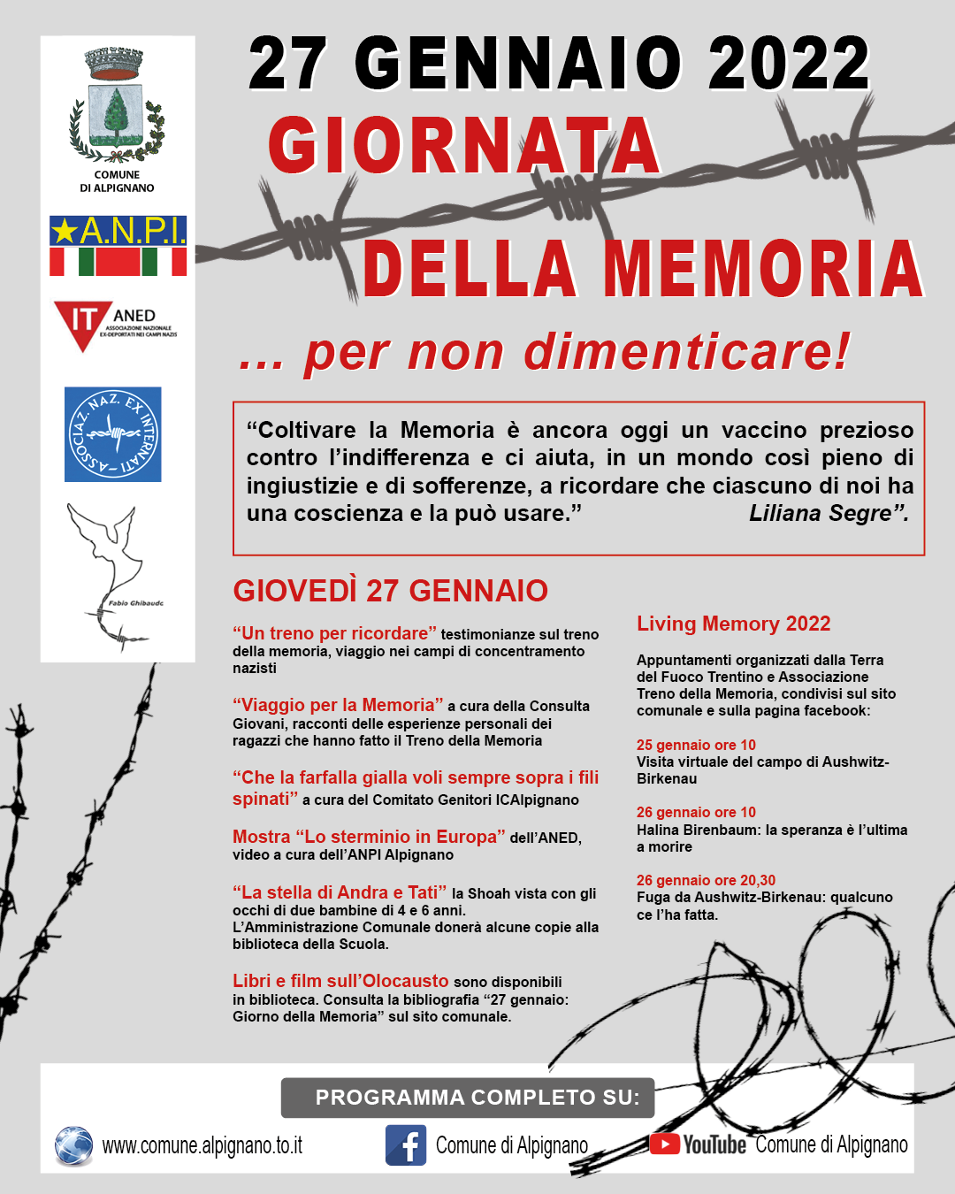 appuntamenti organizzati dalla Terra del Fuoco Trentino e Associazione Treno della Memoria, condivisi sul sito comunale e sulla pagina facebook: