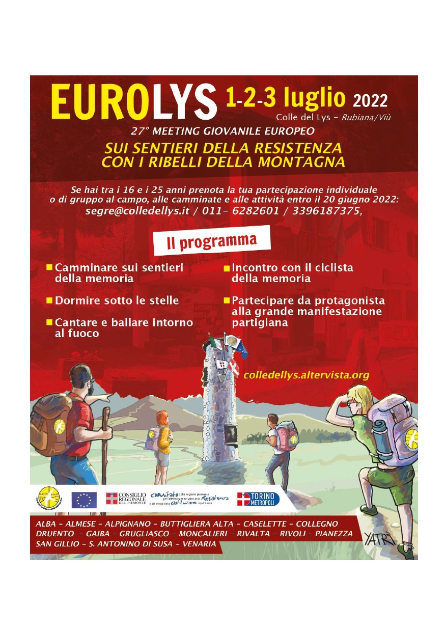 "I giovani d'Europa si incontrano al Colle del Lys" 27^ edizione. Alpignano a Eurolys!
