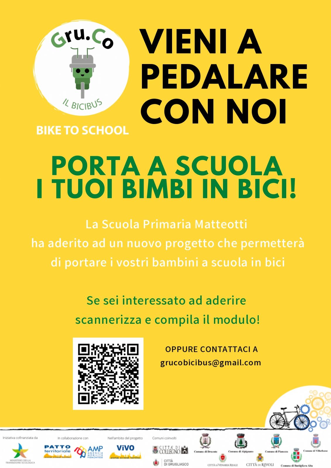 Manca poco alla partenza di Gru.Co, il bicibus organizzato da Legambiente greenTO, all’interno del progetto Bike To School “Vi.VO: Via le Vetture dalla zona Ovest di Torino", in collaborazione con la SCUOLA PRIMARIA MATTEOTTI.