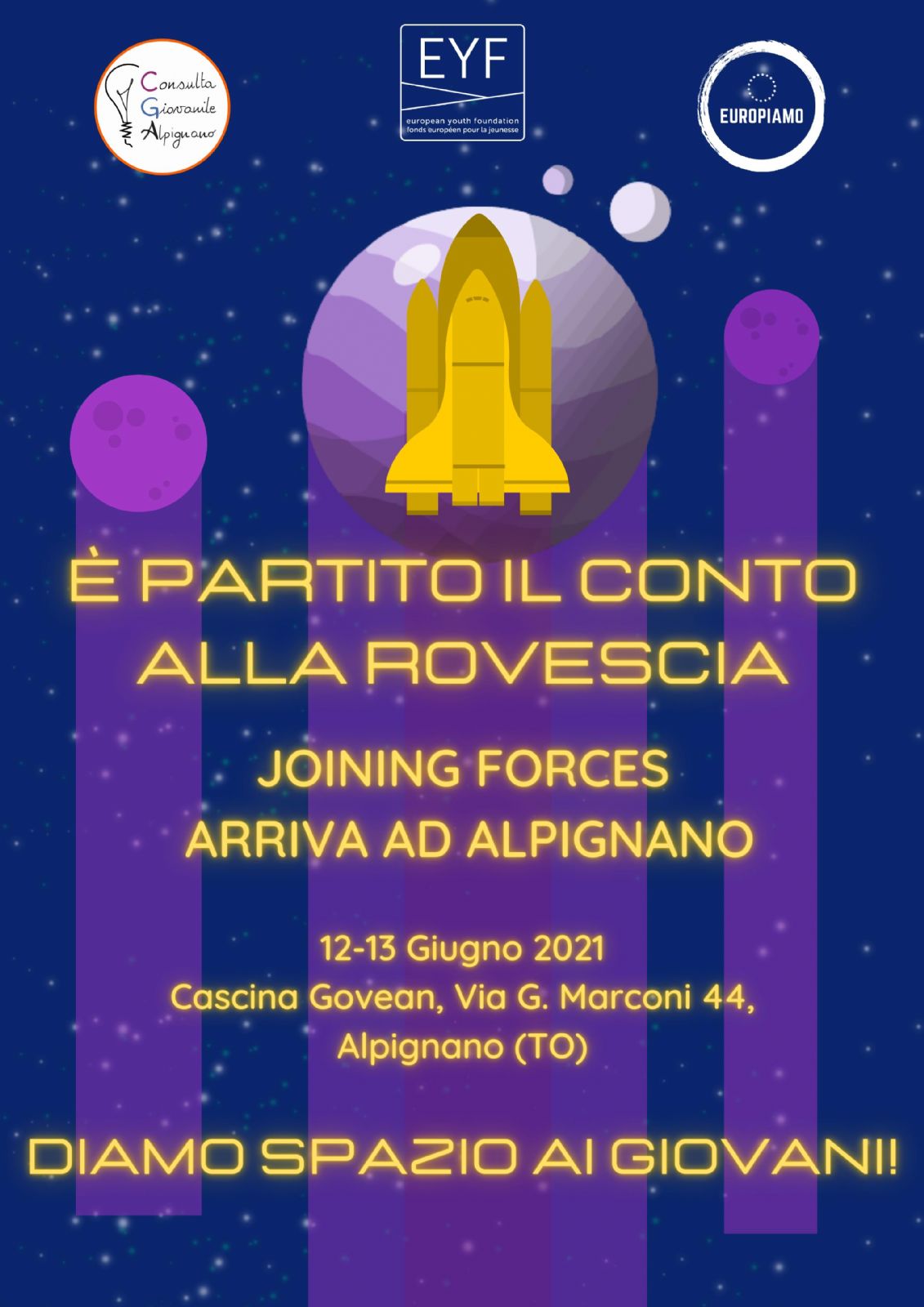 Nel prossimo fine settimana, sabato 12 e domenica 13 giugno, Alpignano ospiterà l'iniziativa "JOINING FORCES", organizzato da Europiamo e dall’European Youth Foundation, un momento di incontro e dialogo con lo scopo di creare momenti di riflessione e team building al fine di migliorare la partecipazione e l'inclusione giovanile ad Alpignano nella fascia di età 11-15.