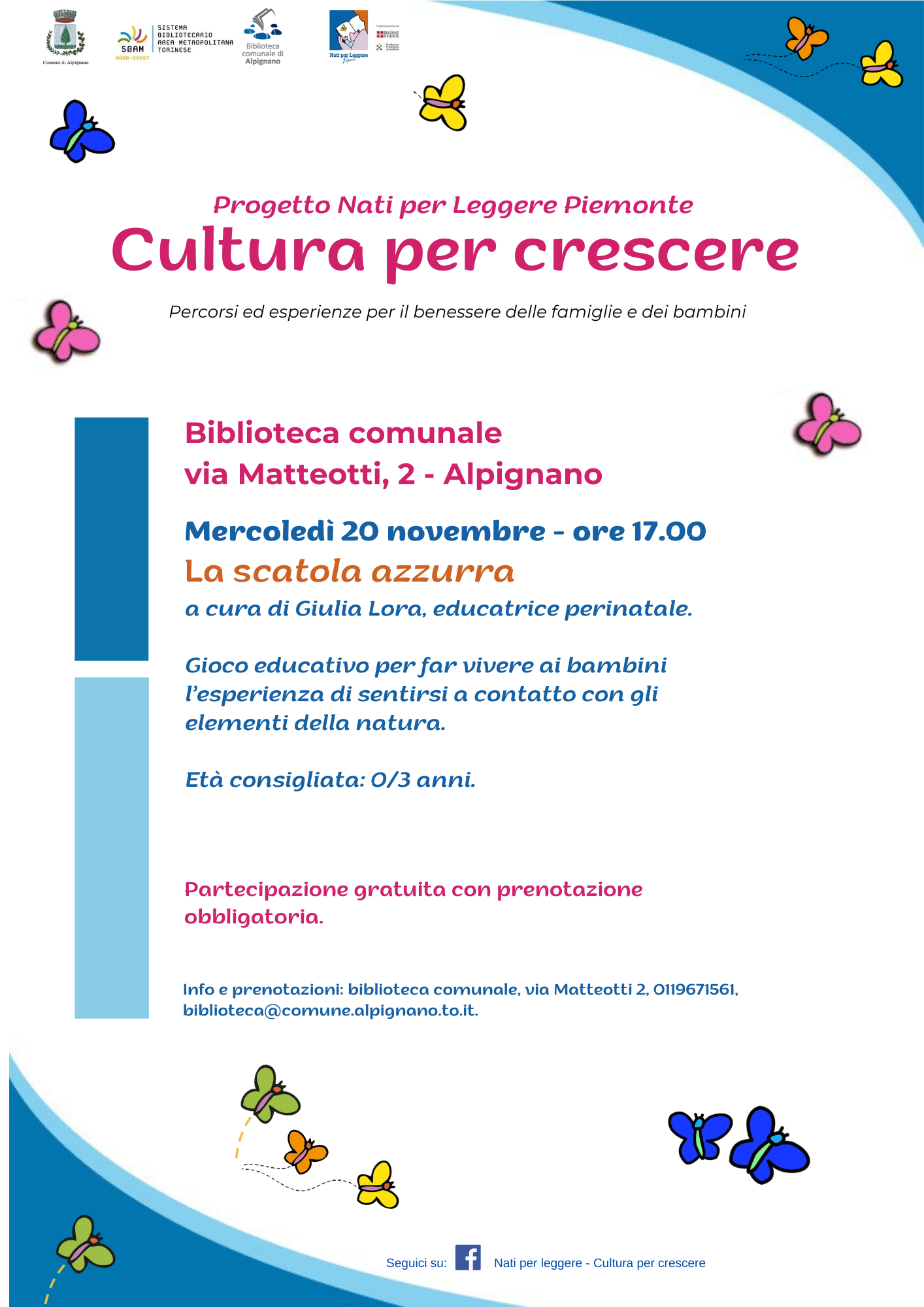Per informazioni e prenotazioni: biblioteca comunale, biblioteca@comune.alpignano.to.it, tel. 0119671561.