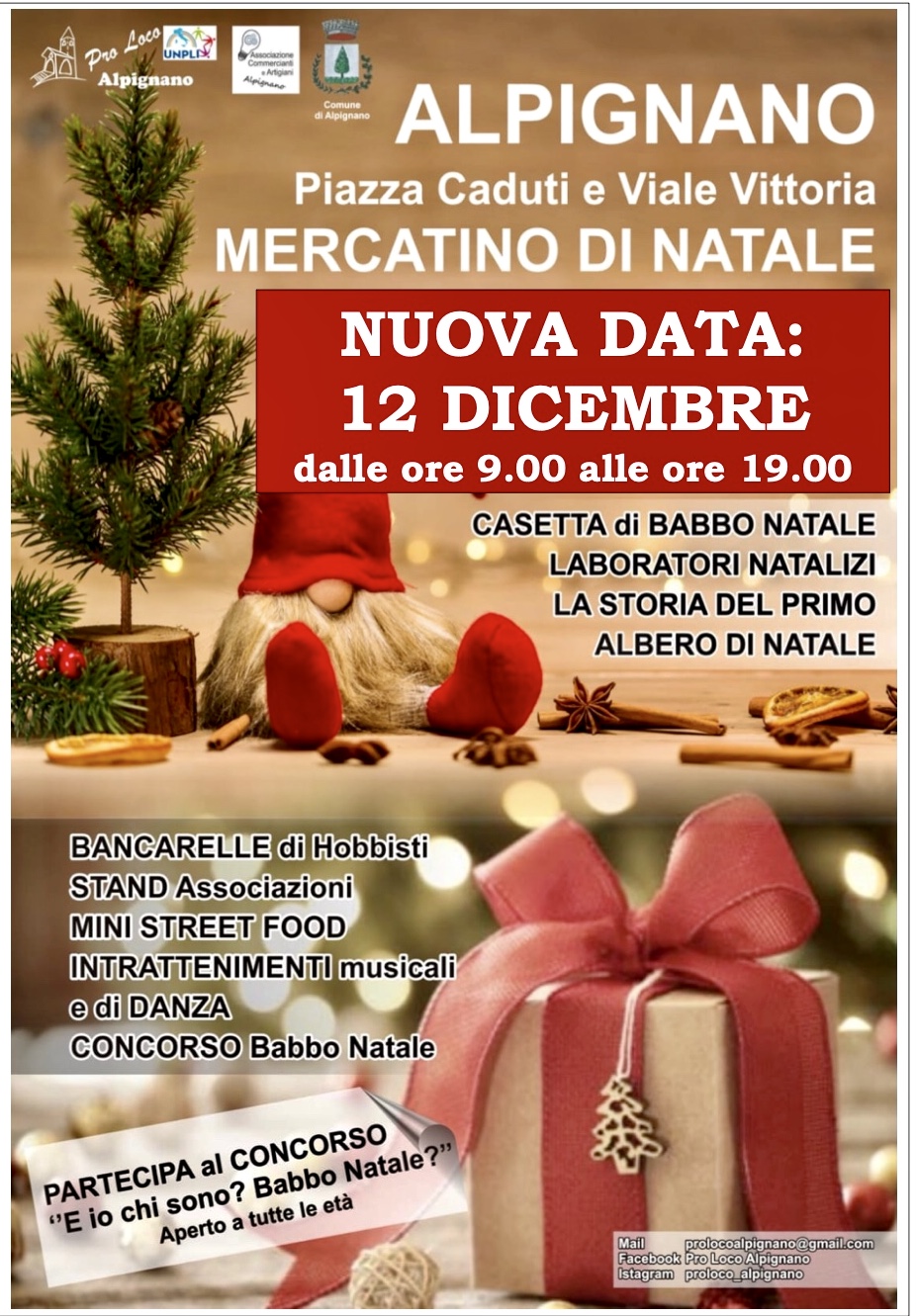La Pro Loco di Alpignano, con il patrocinio del Comune di Alpignano, organizza il tradizionale Mercatino di Natale domenica 12 dicembre, dalle ore 9 alle 19 in piazza Caduti.