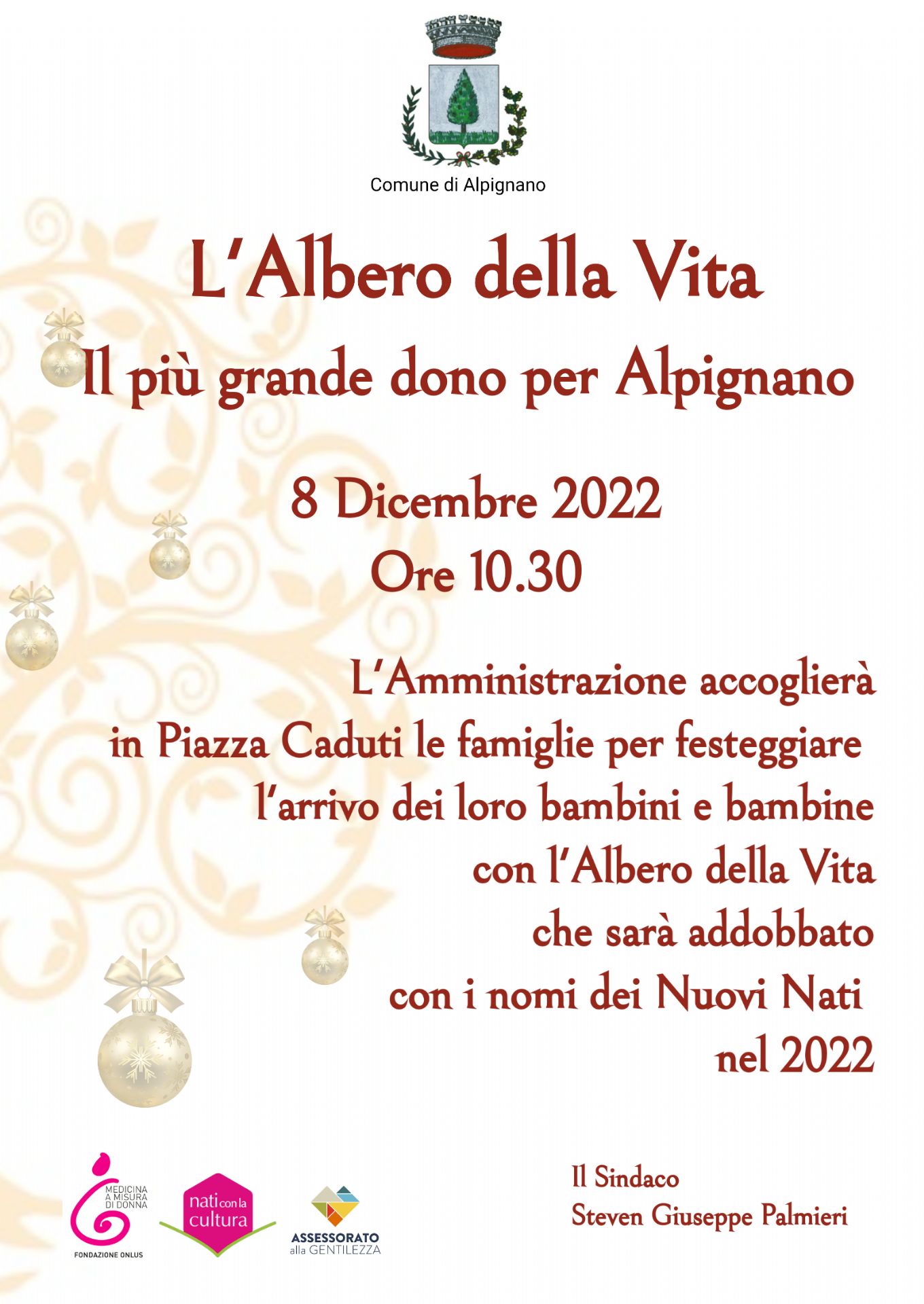 In questa giornata l'albero della vita sarà allestito con i nomi dei nati nel 2022 come importante segno di riconoscimento alle famiglie della nostra comunità che vivono l'immensa gioia e la responsabilità di avere un figlio e che rappresenta nello stesso tempo un grande dono per la comunità alpignanese.