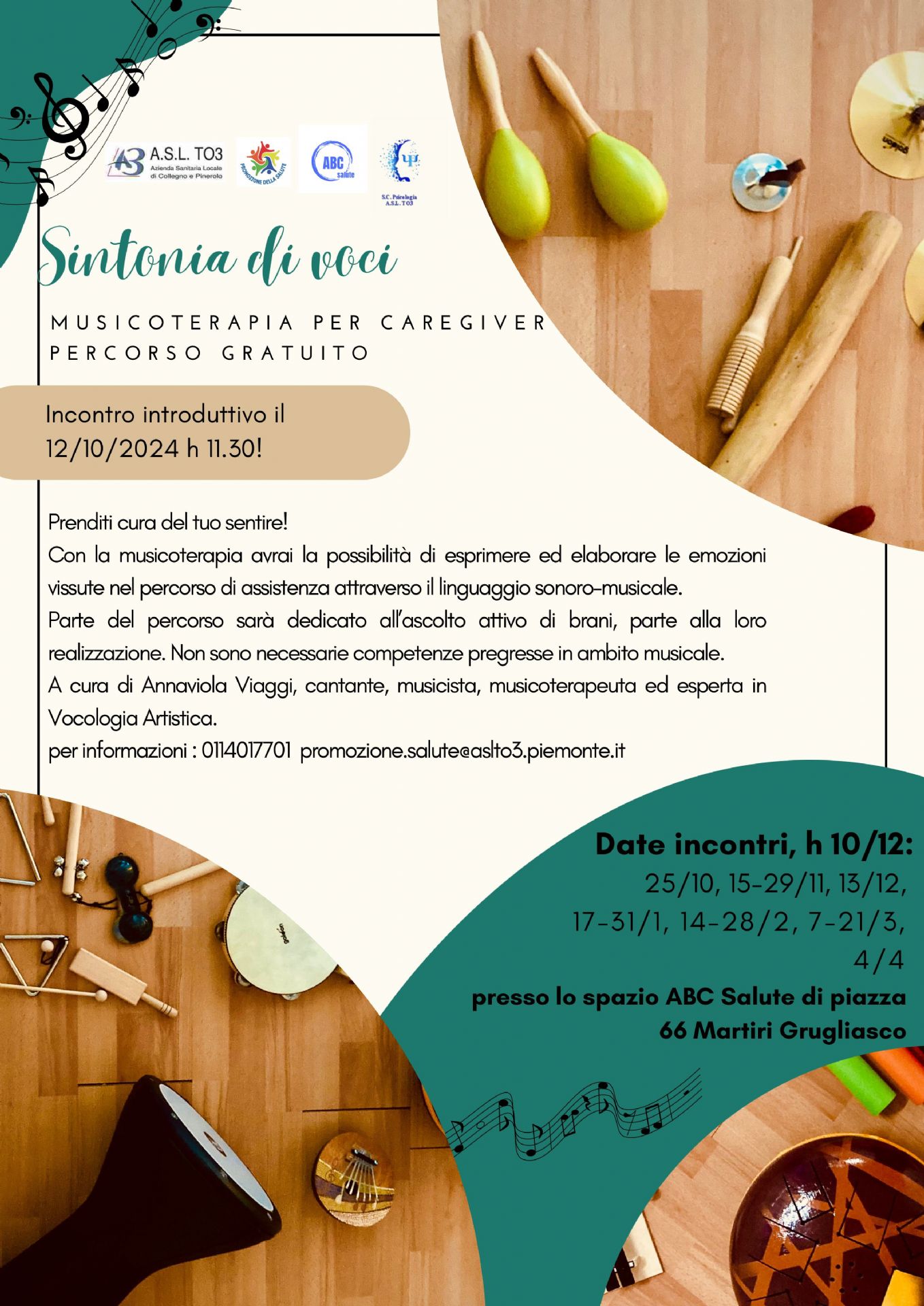 Incontro introduttivo il 12 ottobre 2024 alle ore 11.30 presso lo spazio ABC Salute di piazza 66 Martiri a Grugliasco (TO).