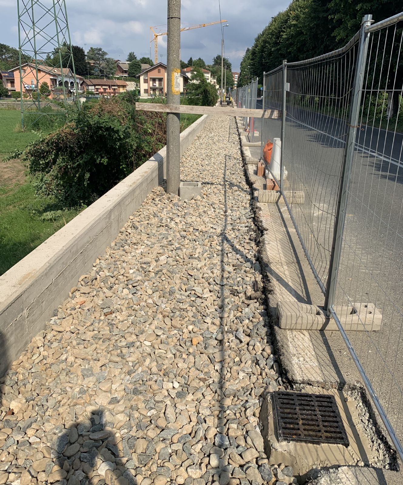 L'Ufficio Tecnico Area Lavori Pubblici informa che sono iniziate le operazioni di riempimento con pietrisco all'interno del manufatto in cemento armato per la realizzazione del nuovo marciapiede.