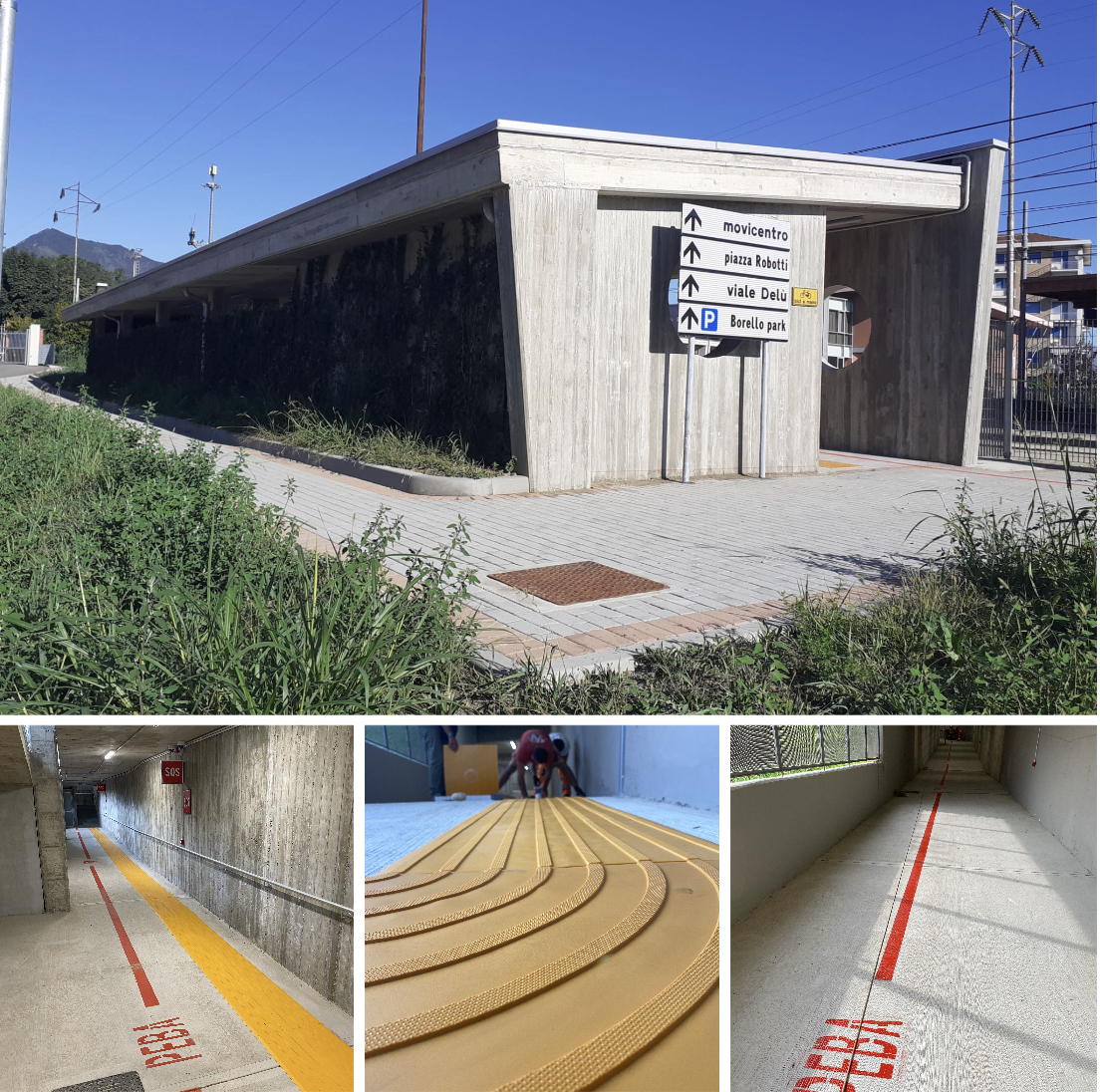Il nuovo sottopasso si integra con i percorsi PEBA realizzati (Piano per l'Eliminazione delle Barriere Architettoniche). E' presente anche il sistema LOGES (acronimo di Linea di Orientamento Guida E Sicurezza), costituito da superfici dotate di rilievi appositamente creati per essere percepiti sotto i piedi. Tale sistema nasce per consentire e fornire dei codici informativi di semplice comprensione, che consentono la realizzazione di percorsi-guida o piste tattili utili per l’orientamento e l’autonomia delle persone cieche e ipovedenti.
