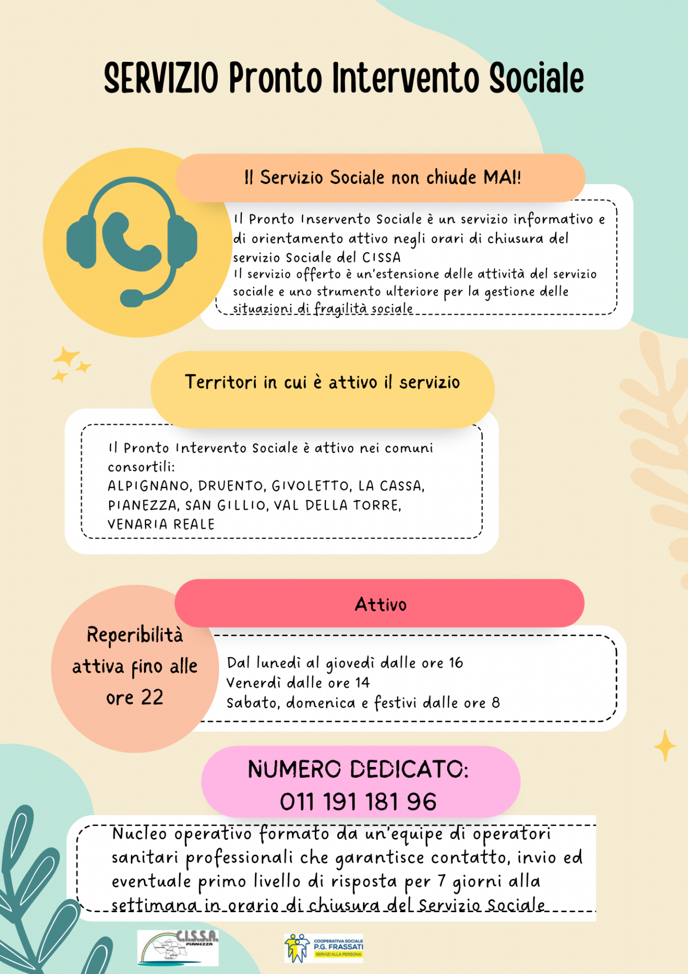 Si avvisano i cittadini che è 𝐚𝐭𝐭𝐢𝐯𝐨 𝐢𝐥 𝐏𝐈𝐒 un 𝐬𝐞𝐫𝐯𝐢𝐳𝐢𝐨 𝐢𝐧𝐟𝐨𝐫𝐦𝐚𝐭𝐢𝐯𝐨 𝐞 𝐝𝐢 𝐨𝐫𝐢𝐞𝐧𝐭𝐚𝐦𝐞𝐧𝐭𝐨 𝐩𝐫𝐞𝐬𝐞𝐧𝐭𝐞 𝐬𝐮𝐥 𝐭𝐞𝐫𝐫𝐢𝐭𝐨𝐫𝐢𝐨 𝐝𝐞𝐢 𝐂𝐨𝐦𝐮𝐧𝐢 𝐜𝐨𝐧𝐬𝐨𝐫𝐳𝐢𝐚𝐭𝐢 𝐧𝐞𝐠𝐥𝐢 𝐨𝐫𝐚𝐫𝐢 𝐝𝐢 𝐜𝐡𝐢𝐮𝐬𝐮𝐫𝐚 𝐝𝐞𝐥 𝐬𝐞𝐫𝐯𝐢𝐳𝐢𝐨 𝐬𝐨𝐜𝐢𝐚𝐥𝐞 𝐝𝐞𝐥 𝐂𝐈𝐒𝐒𝐀.