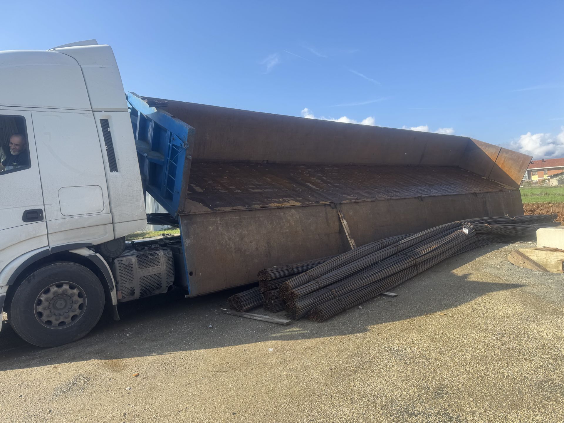 Oggi sono in corso le operazioni di fornitura e trasporto delle armature metalliche propedeutiche alla realizzazione della platea della fondazione degli edifici.
