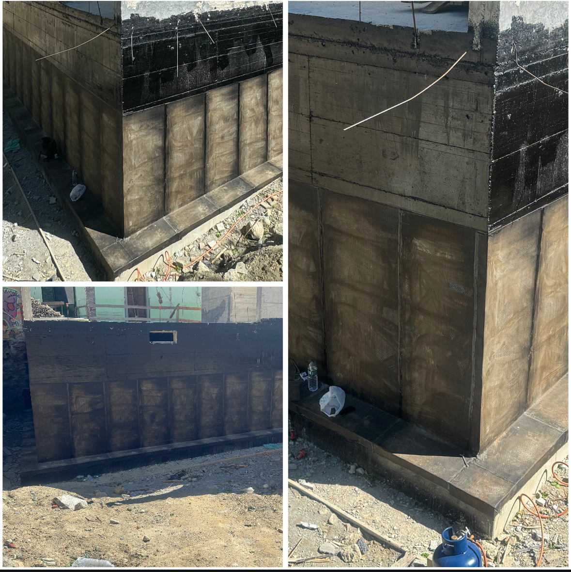 Oggi è in fase di completamento la posa della membrana impermeabilizzante del muro controterra del nuovo edificio a servizio della villa storica.