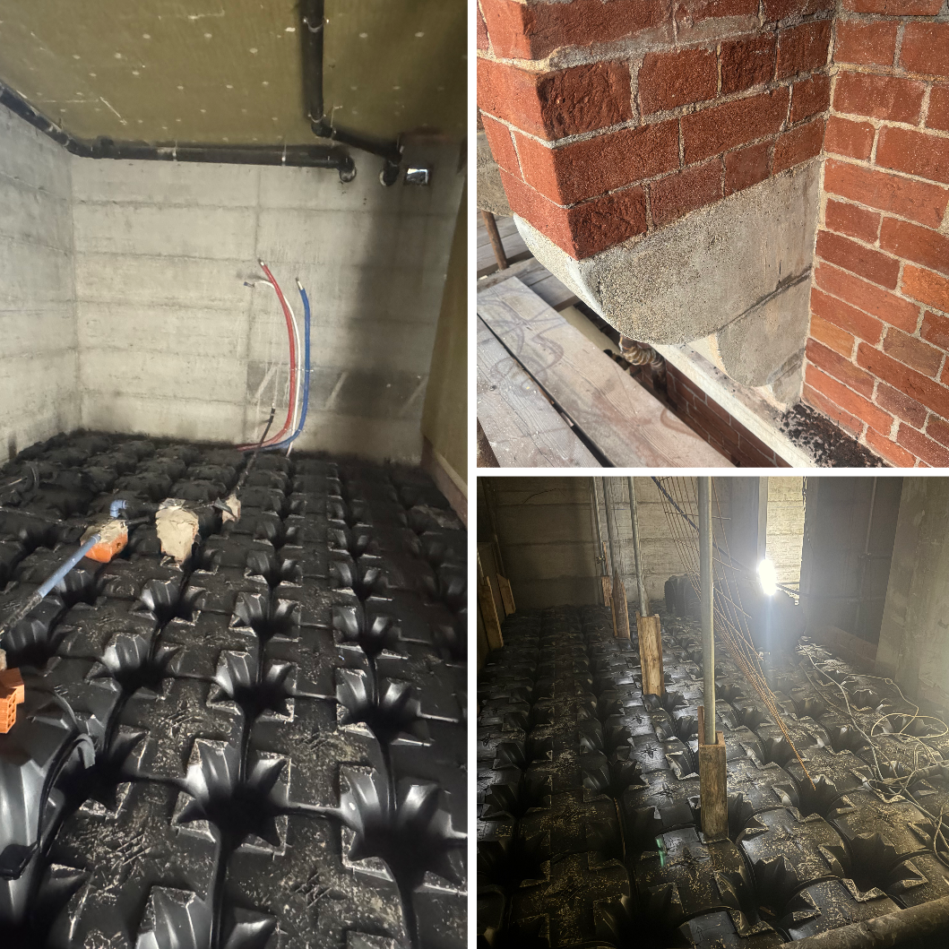 - realizzazione vespaio piano interrato della villa storica e del nuovo edificio.