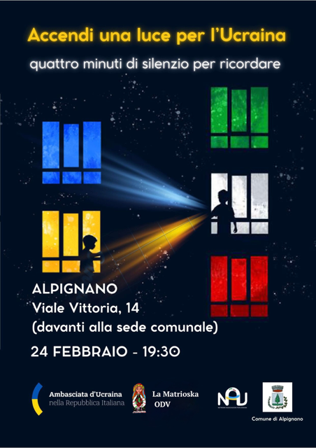 Il Comune di Alpignano aderisce all'evento nazionale di solidarietà “Accendi una luce per l'Ucraina”, un'azione collettiva e un'affermazione di valori promossa da NAU (Network Associazioni per l'Ucraina)