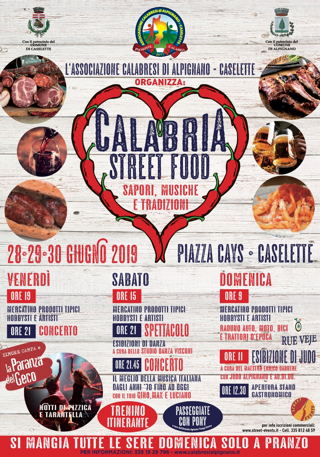 L'Associazione Calabresi di Alpignano e Caselette organizza "Calabria Street food": sapori, musiche e tradizioni venerdì 28, sabato 29 e domenica 30 giugno 2019 a Caselette.