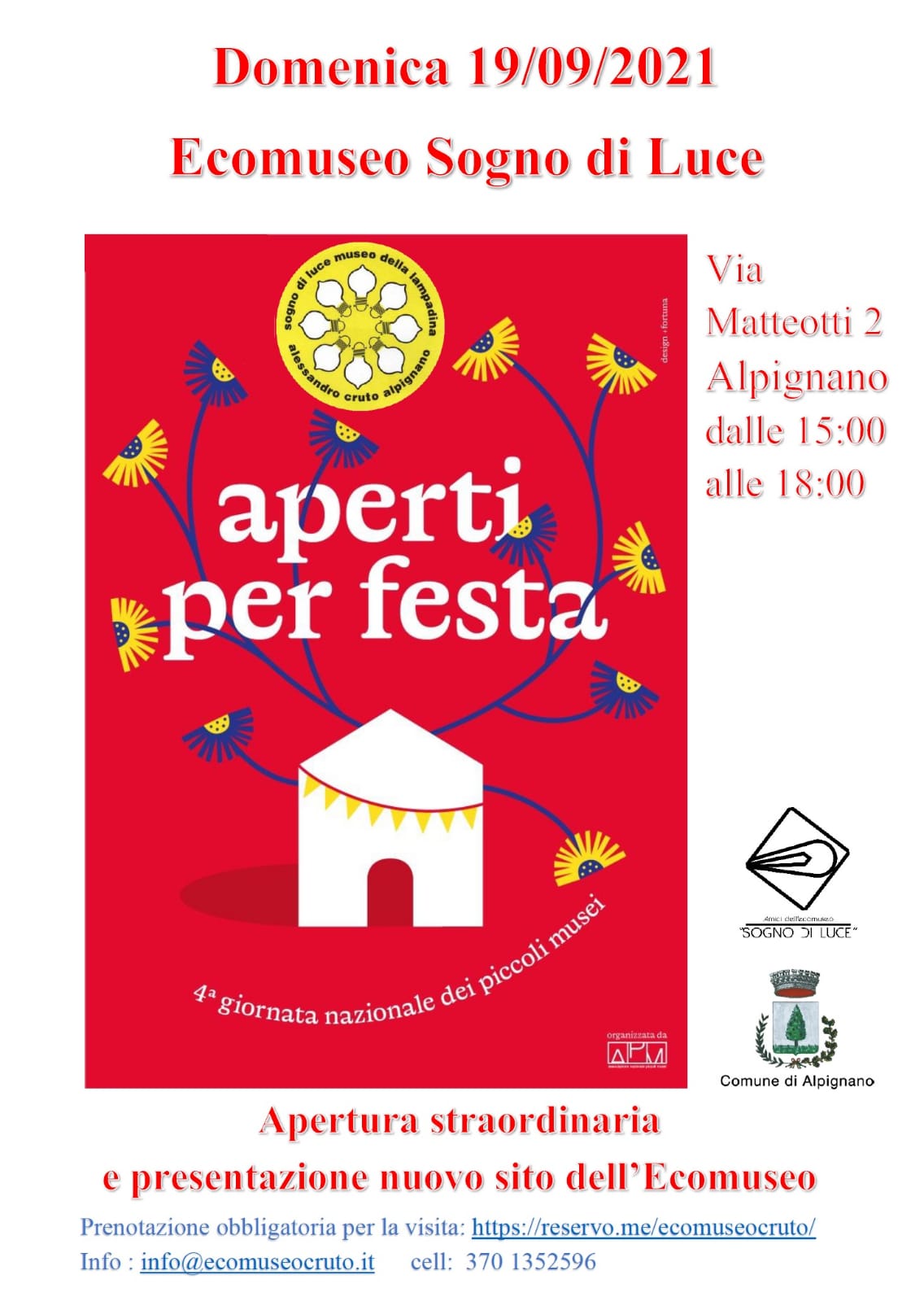 Ecomuseo Sogno di Luce: Giornata Nazionale dei Piccoli Musei e nuovo sito web - Domenica 19 settembre