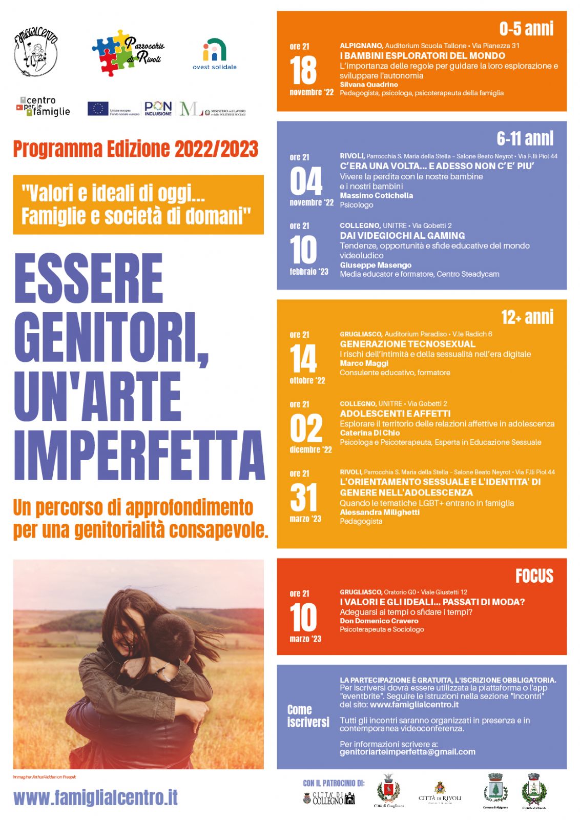 I Comuni di Alpignano, Collegno, Grugliasco, Rivoli e Druento patrocinano l'undicesima edizione degli incontri per genitori “Essere genitori, un’arte imperfetta”, percorso di approfondimento per una genitorialità consapevole.