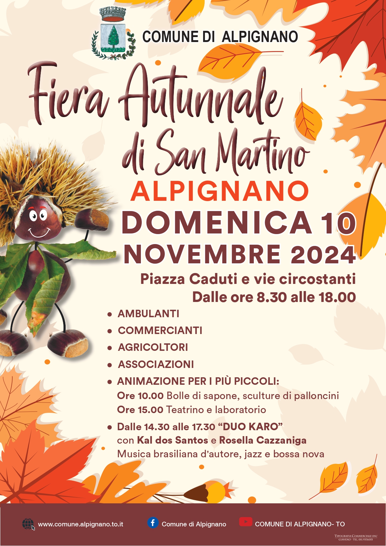 Vi aspettiamo alla "Fiera di San Martino" domenica 10 novembre, dalle 8.30 alle 18.00, Piazza Caduti: