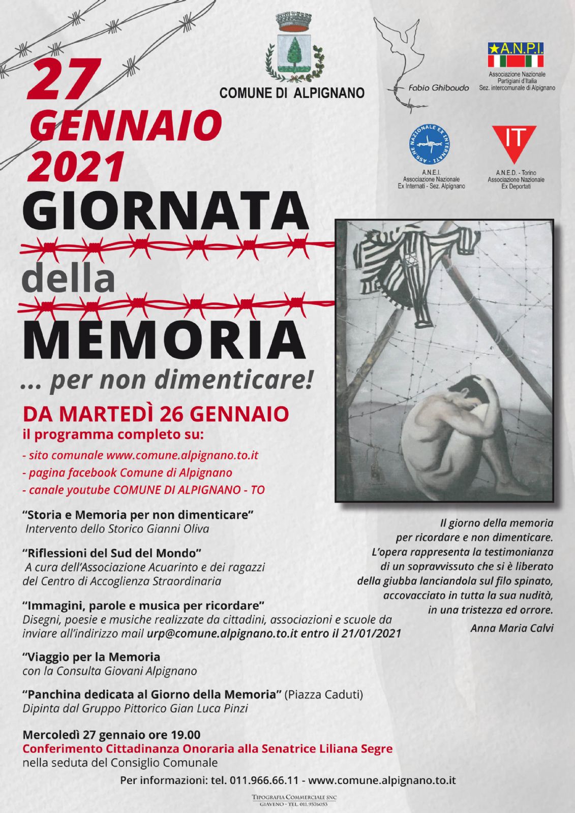 Purtroppo i vincoli imposti dall'emergenza epidemiologica in corso, non ci permettono di organizzare iniziative “in presenza”, quindi “Il Giorno della Memoria” sarà raccontato sul sito e sulla pagina facebook del Comune di Alpignano attraverso tante forme: