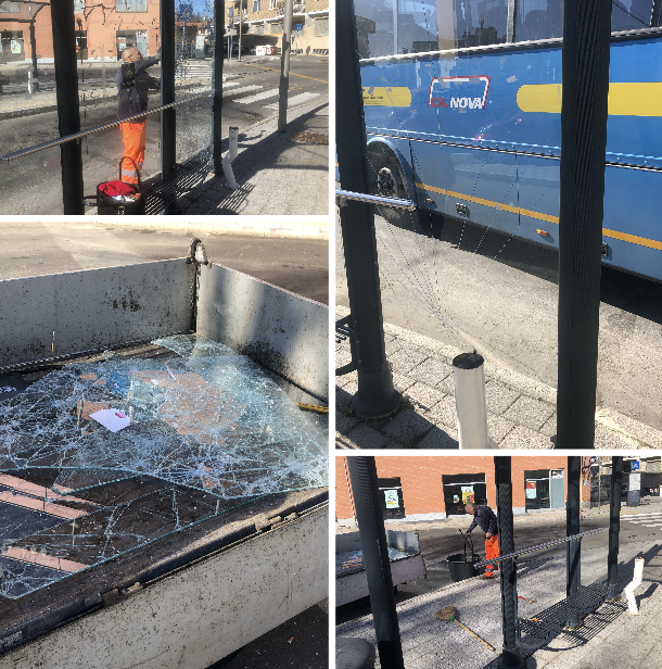 L'Ufficio Tecnico Area Lavori Pubblici informa che a seguito dell'ennesimo atto di vandalismo avvenuto nella piazza Robotti sono iniziati i lavori di messa in sicurezza delle vetrate delle pensiline divelte.