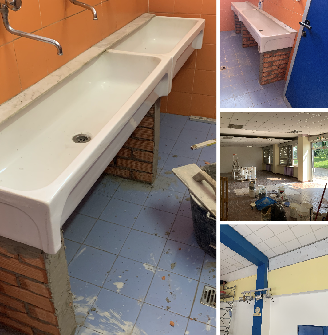 L'Ufficio Tecnico Area Lavori Pubblici informa che sono in corso i lavori di messa in sicurezza dei bagni, dell'auditorium e del refettorio all'interno della scuola.