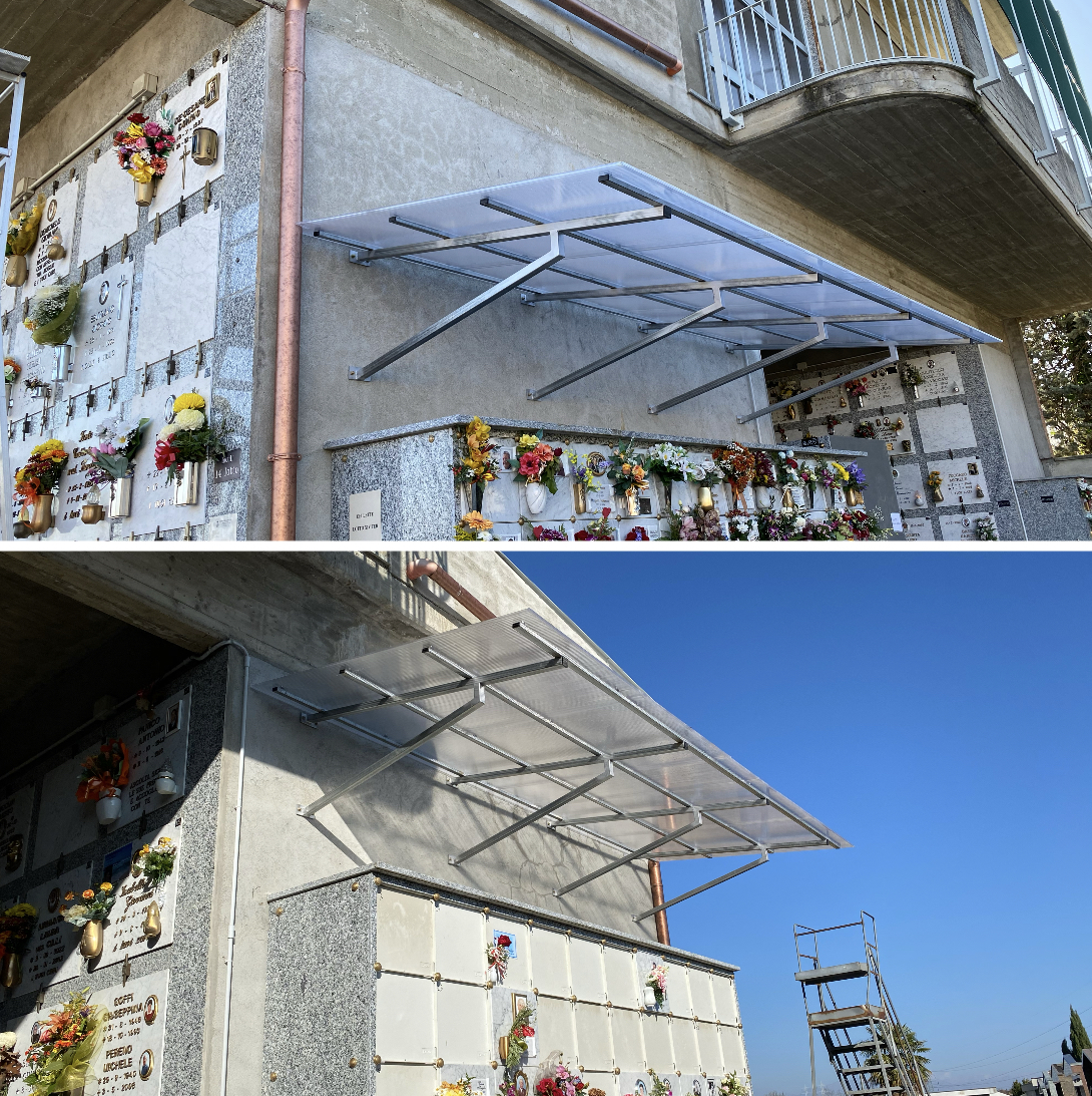 L'Ufficio Tecnico Area Lavori Pubblici informa che sono terminati i lavori di posa delle pensiline a protezione delle cellette cinerarie del XIV lotto.