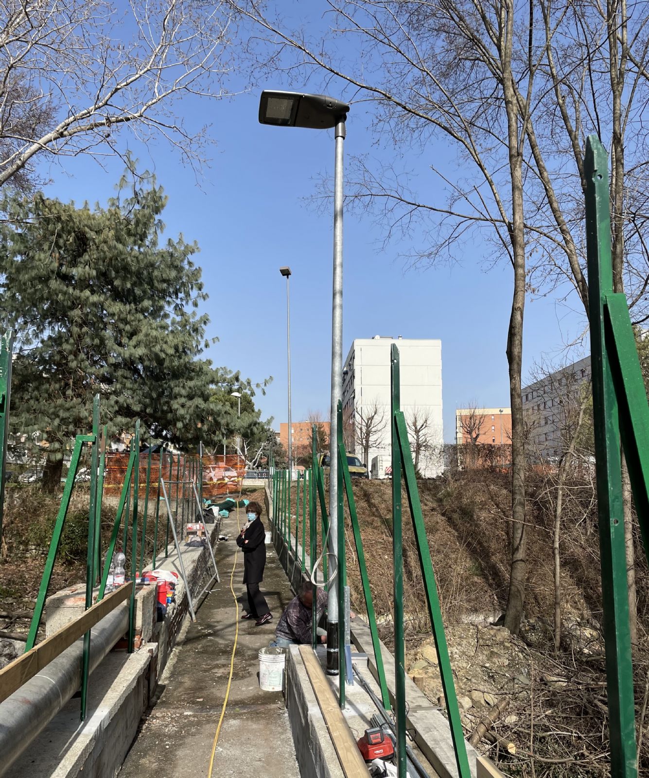 L'Ufficio Tecnico Area Lavori Pubblici informa la cittadinanza che sono in corso i lavori per l'installazione di un nuovo impianto di illuminazione a LED sulla passerella pedonale sul fiume Dora che collega la zona del cimitero con il Parco Aldo Moro.