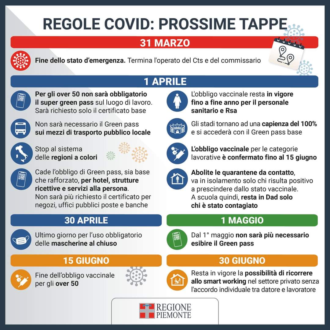 Lo stato di emergenza, deliberato dal Consiglio dei ministri il 31 gennaio 2020 e via via prorogato, termina il 31 marzo 2022.