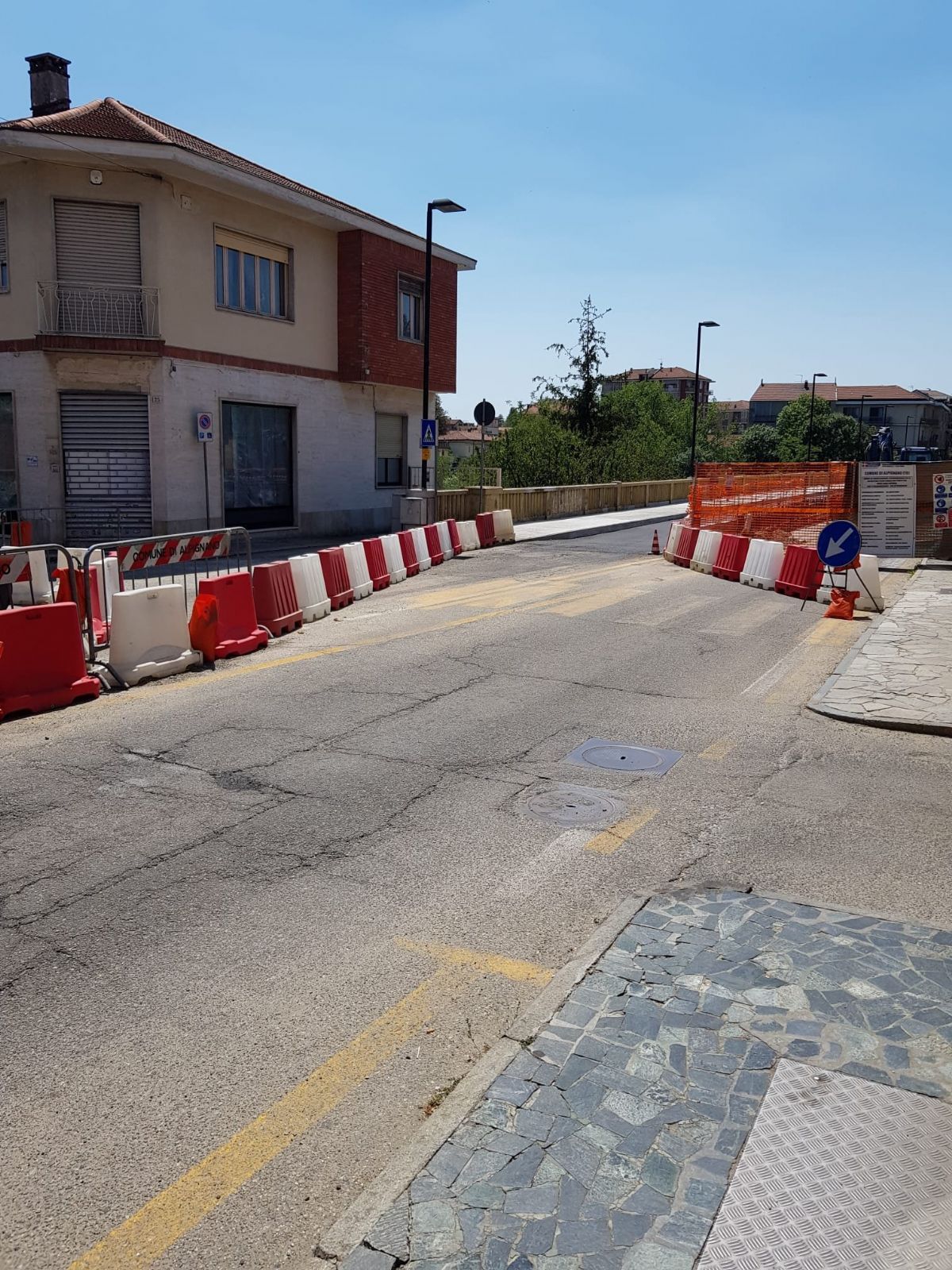 Si comunica che la sistemazione definitiva dei marciapiedi, delle balaustre e dei manti stradali (tappetino di finitura) verrà eseguita al termine dei lavori di demolizione e ripristino della carreggiata di monte.