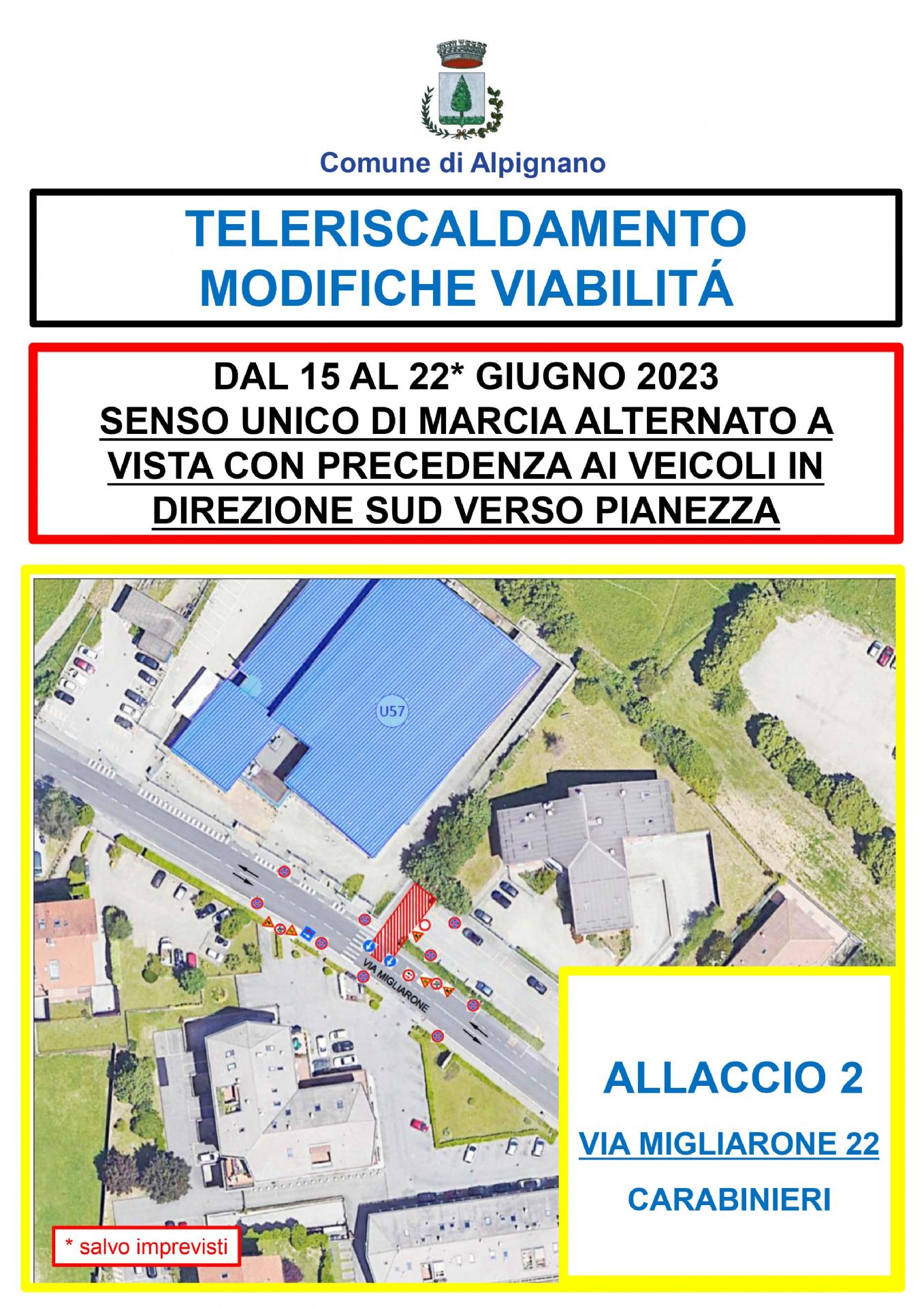 Al via l'apertura del cantiere dal 15 al 22 giugno, e comunque sino alla fine lavori, sulla Via Migliarone all'altezza del n. civico 22, per l'allacciamento della Caserma dei Carabinieri alla rete del teleriscaldamento.
