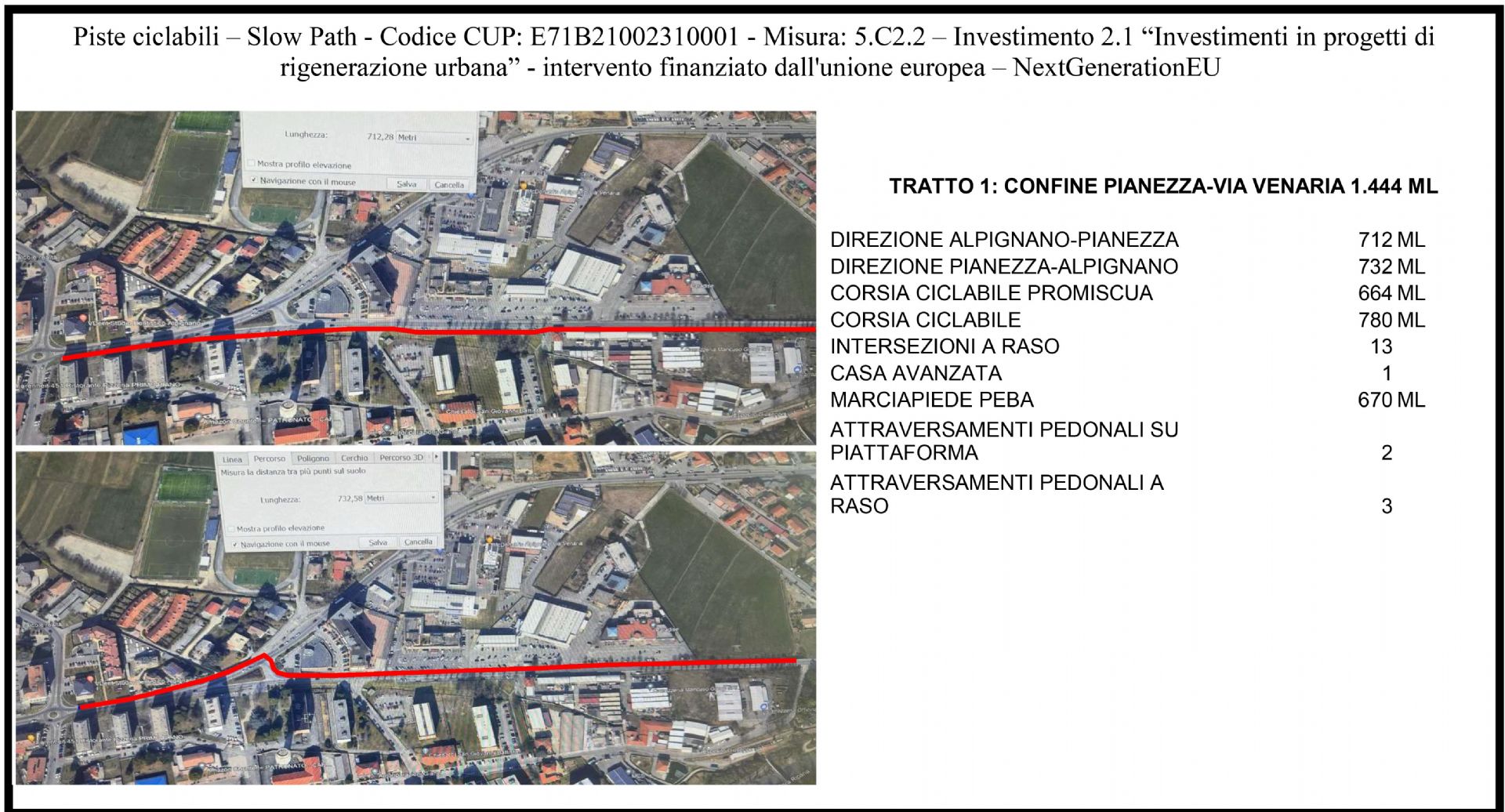 - Percorso ciclabile in direzione PIANEZZA-ALPIGNANO (732 ml);