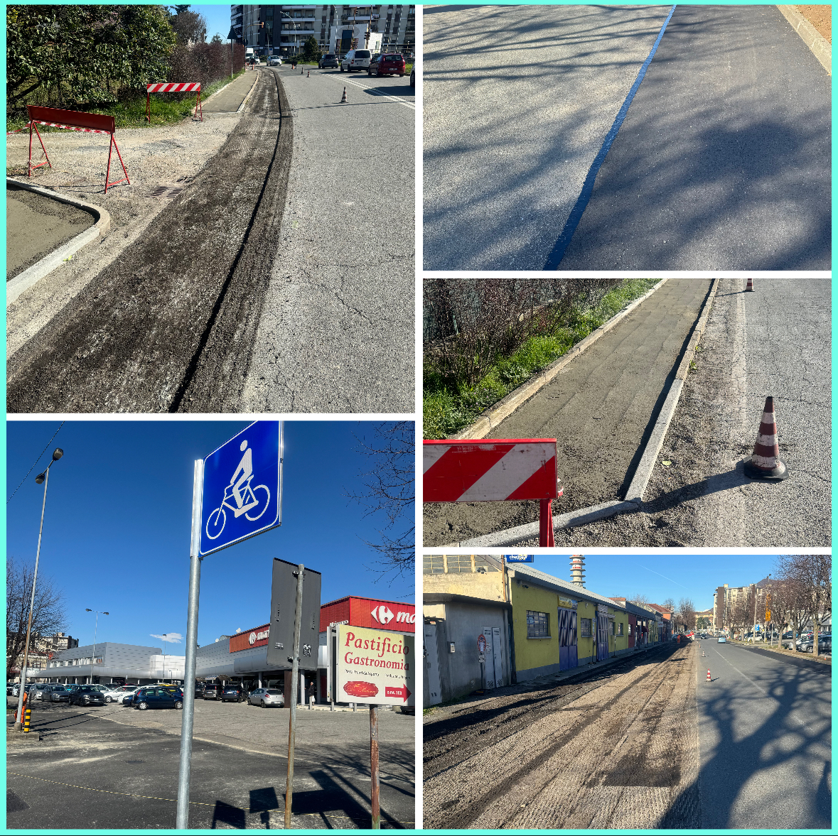 - sigillatura tappetino bituminoso nuova pista ciclabile via Cavour lato sinistro in direzione Pianezza;