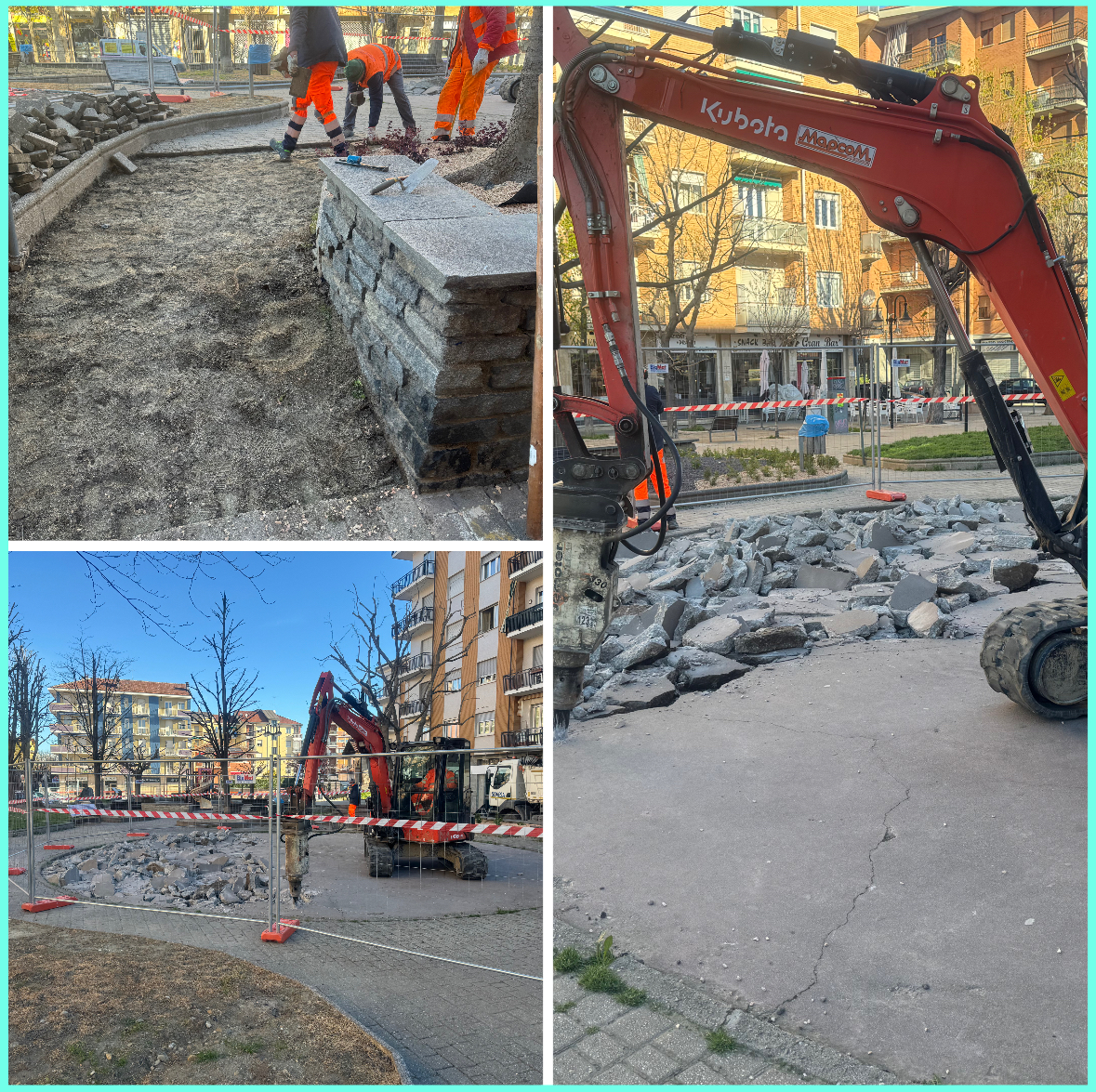 Oggi sono in corso le attività di demolizione della pavimentazione dell'isola centrale della piazza dei Caduti.
