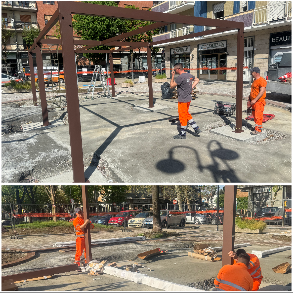 Oggi sono in corso le operazioni di montaggio del nuovo gazebo in acciaio.