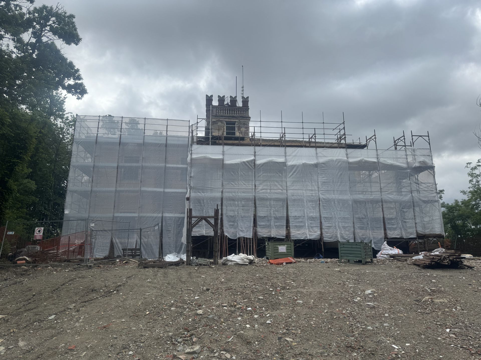 Oggi sono in corso i lavori di montaggio del ponteggio a supporto delle attività per la costruzione della nuova palazzina.