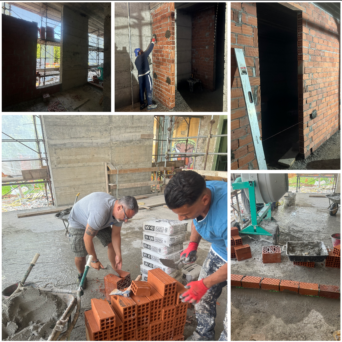 - posa dei laterizi per la realizzazione dei muri divisori al piano terra del nuovo edificio;