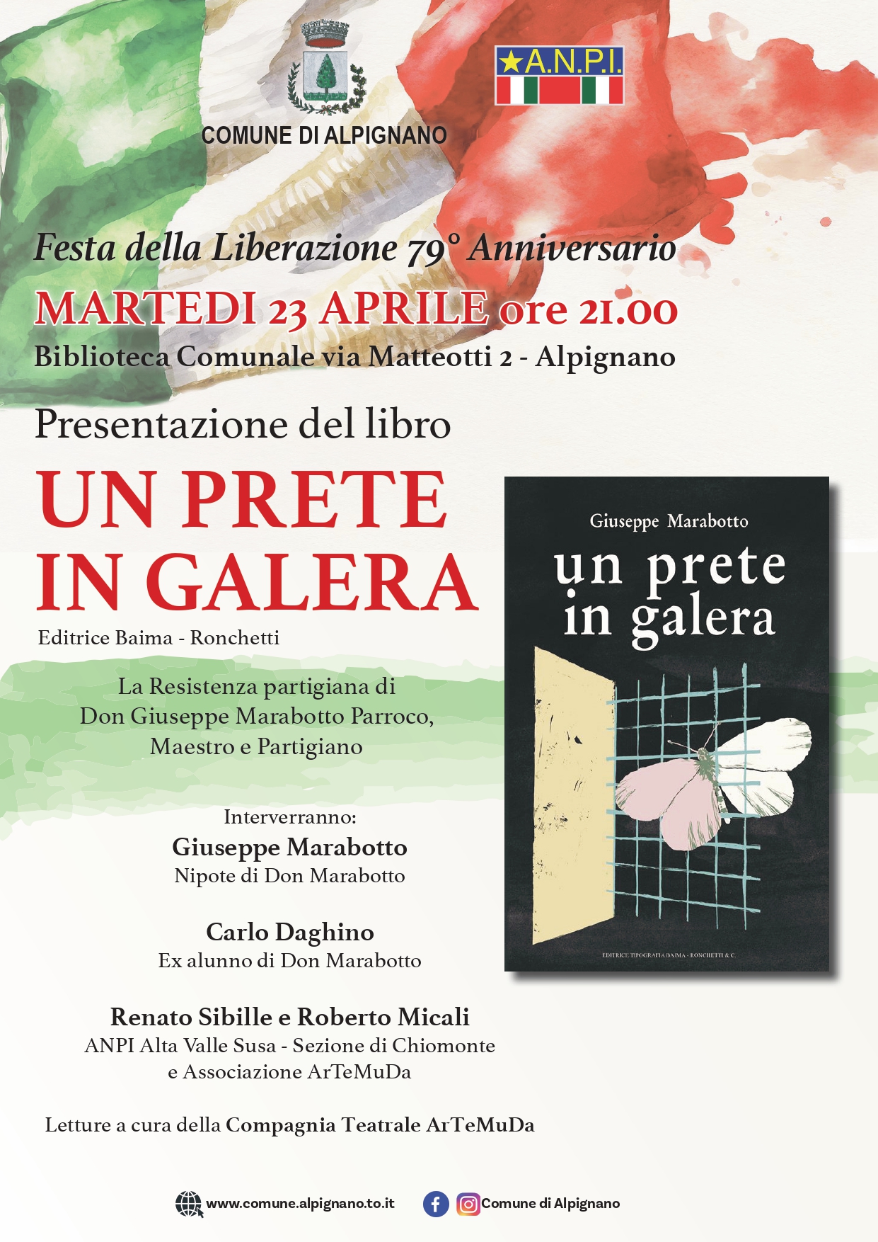 Nell'ambito delle numerose iniziative che propone il Comune di Alpignano, c'è anche un contributo della biblioteca: martedì 23 aprile, alle ore 21, presso il salone museale, sarà presentato il libro “Un prete in galera”, la testimonianza della Resistenza partigiana di don Giuseppe Marabotto che fu parroco, maestro e partigiano di Mondovì.
