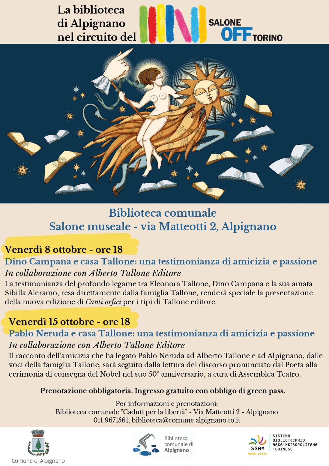 - 15 ottobre 2021, ore 18: Pablo Neruda e casa Tallone: una testimonianza di amicizia e passione.