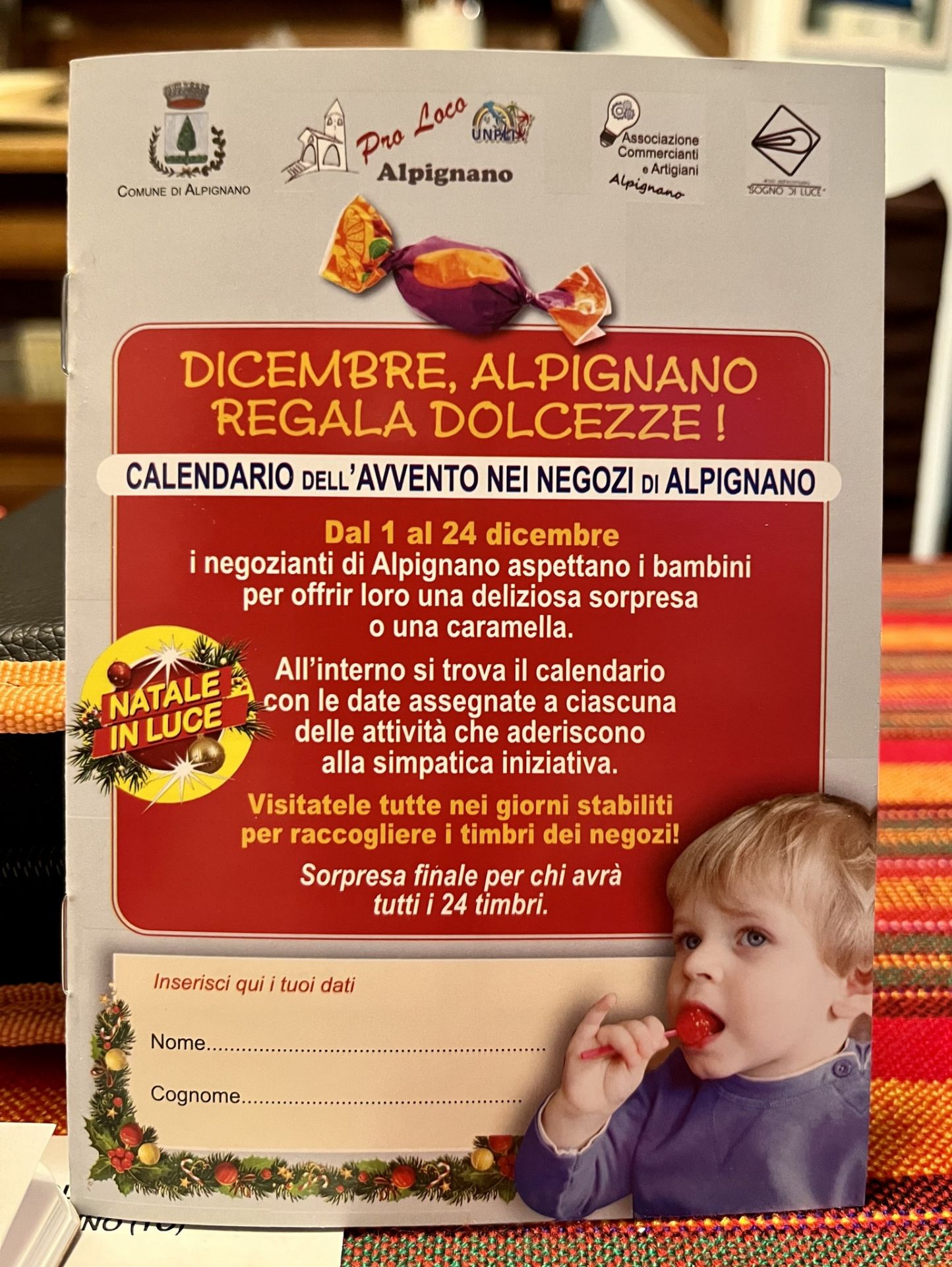 Il calendario con i giorni e l’elenco dei negozi per ciascun giorno è stato distribuito nelle scuole di Alpignano racchiuso in un librettino da conservare e che contiene anche tutti gli appuntamenti natalizi della Pro Loco.
