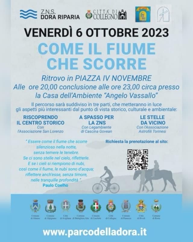 Questo venerdì sera si terrà una passeggiata sotto le stelle alla scoperta del Centro storico, della Zona Naturale di Salvaguardia della Dora Riparia che si concluderà verso le 23 circa alla Casa dell'Ambiente "Angelo Vassallo".