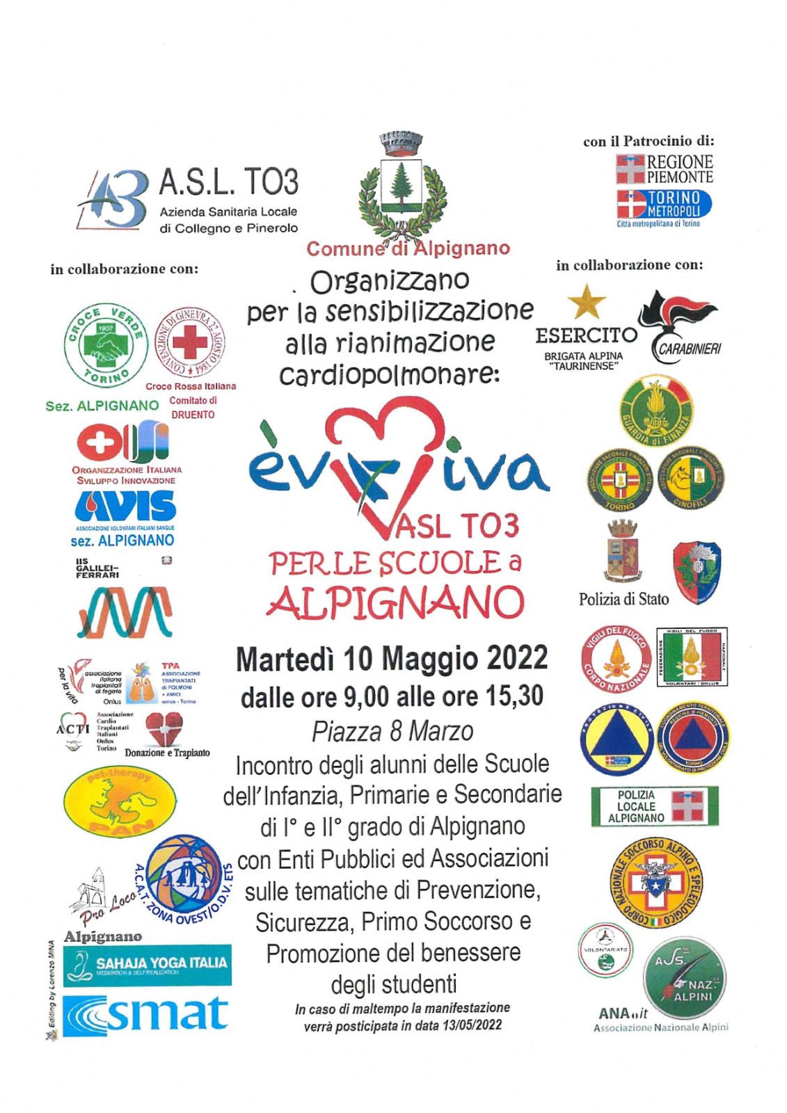 Alpignano ospiterà martedì 10 maggio "Èvviva AslTo3", l'iniziativa che insegna agli studenti cosa fare, come comportarsi, dove cercare aiuto in caso di emergenza.
