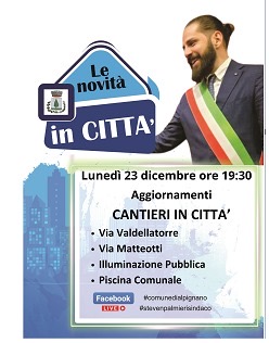 𝐋𝐮𝐧𝐞𝐝𝐢̀ 𝟐𝟑 𝐝𝐢𝐜𝐞𝐦𝐛𝐫𝐞 𝐚𝐥𝐥𝐞 𝟏𝟗:𝟑𝟎, appuntamento con la rubrica "𝑳𝒆 𝒏𝒐𝒗𝒊𝒕𝒂̀ 𝒊𝒏 𝑪𝒊𝒕𝒕𝒂̀" in diretta sulla pagina Facebook del Comune di Alpignano.