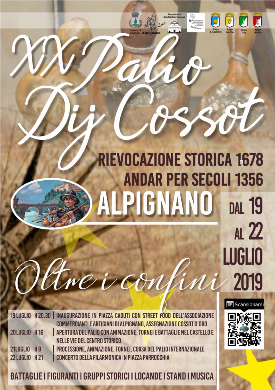 Si comincia VENERDÌ 19 LUGLIO alle ore 21.00 in Piazza Caduti con: l’assegnazione del Cossòt d'oro 2019 nella cornice delle Notti d’Estate organizzate dall'Associazione Commercianti e Artigiani Alpignano.