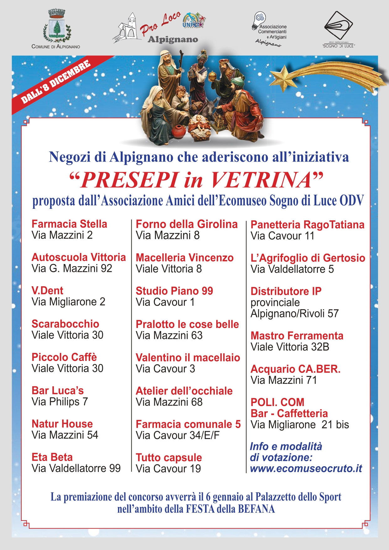 Per la prima volta i presepi verranno esposti nelle vetrine delle attività commerciali che sono indicate nel volantino allegato.