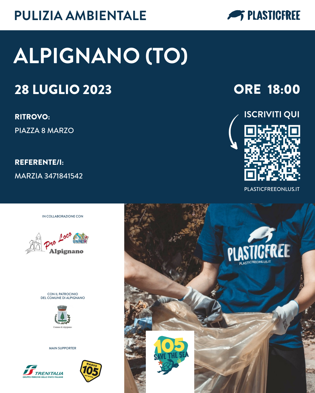 Alpignano sarà protagonista di una delle tappe dell’associazione “Plastic Free”.