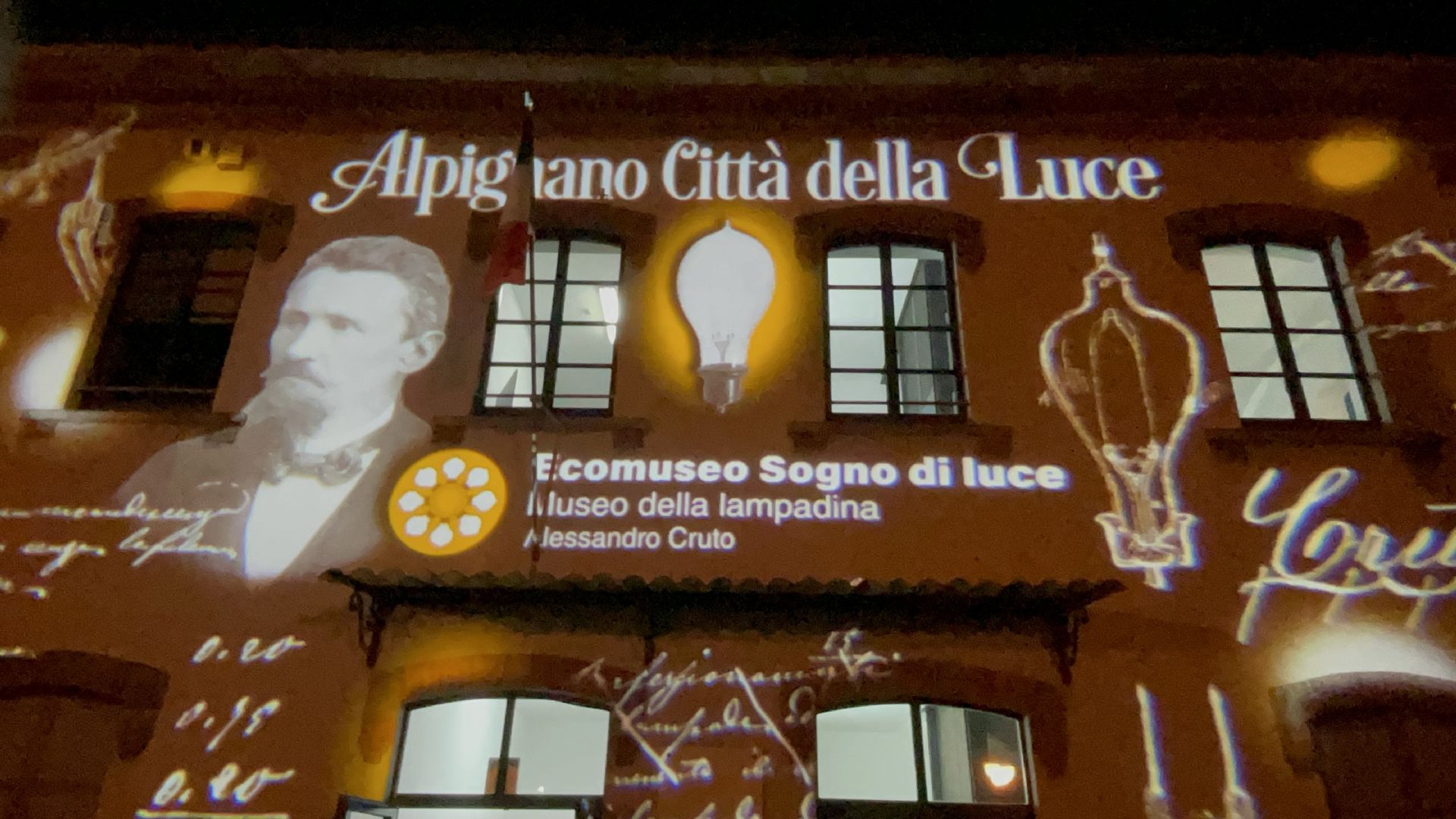 Alla fine della giornata una bella sorpresa: l'illuminazione della facciata per ricordare il successo dell'inventore.