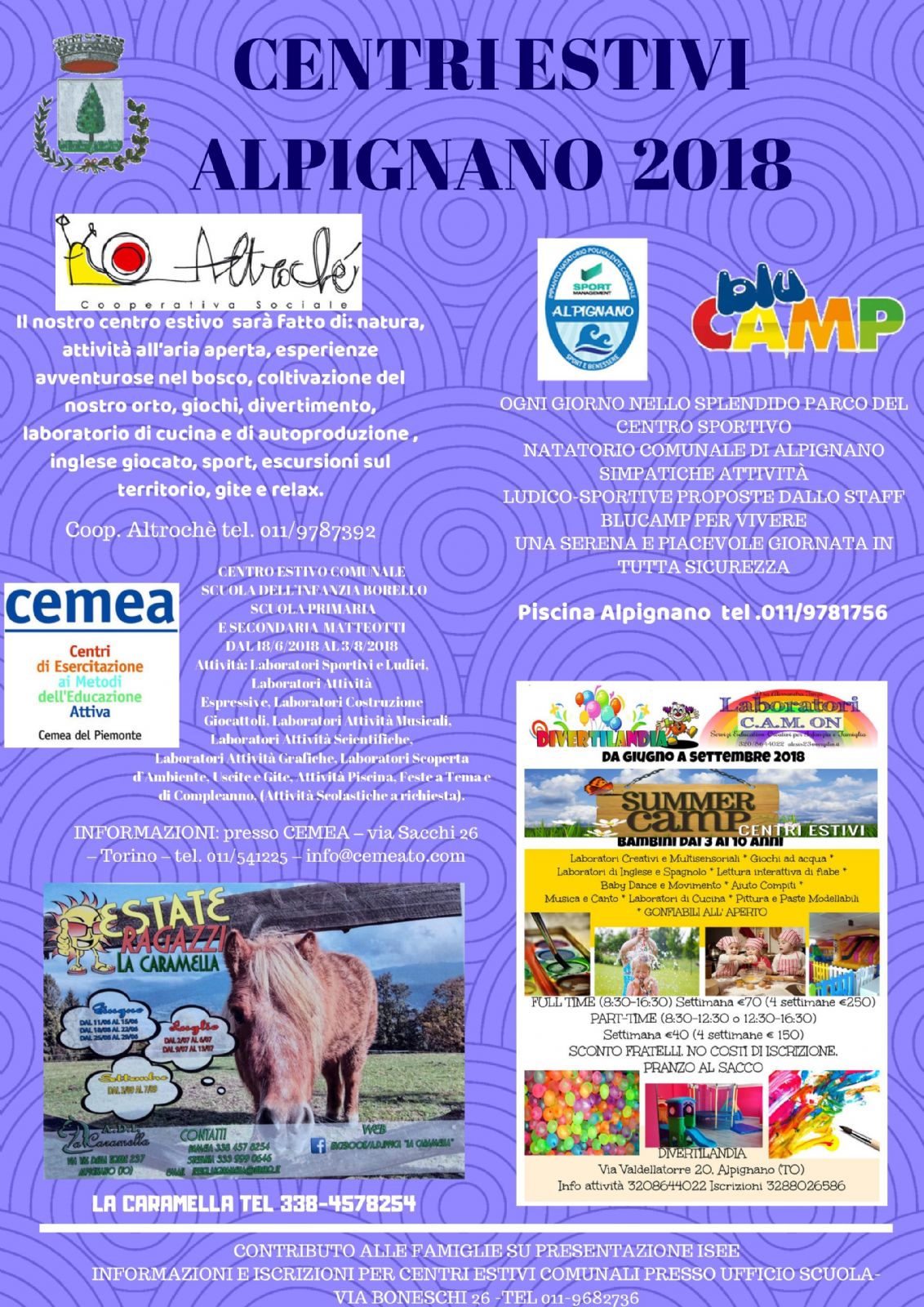 CENTRI ESTIVI 2018 - OFFERTE SUL TERRITORIO E CENTRO ESTIVO COMUNALE PRESSO SCUOLA BORELLO PER MATERNE E PRESSO SCUOLA MATTEOTTI PER PRIMARIA E SECONDARIA DI PRIMO GRADO -