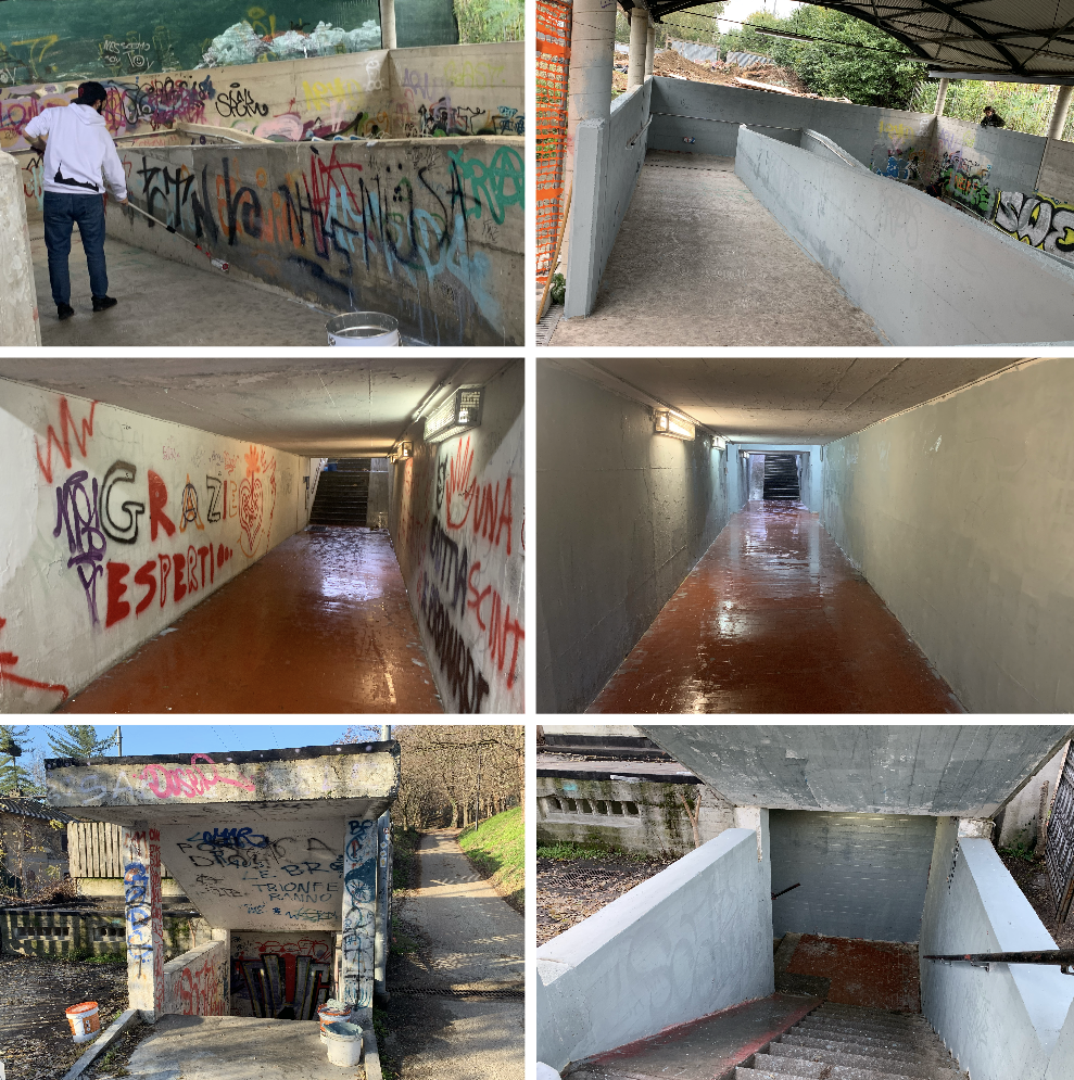 E' terminata l'operazione di tinteggiatura e preparazione dei "muri legali" dei sottopassi individuati dall'Amministrazione Comunale, con il supporto dell'Ufficio Tecnico, ovvero i muri di proprietà pubblica sui quali realizzare graffiti e murales.