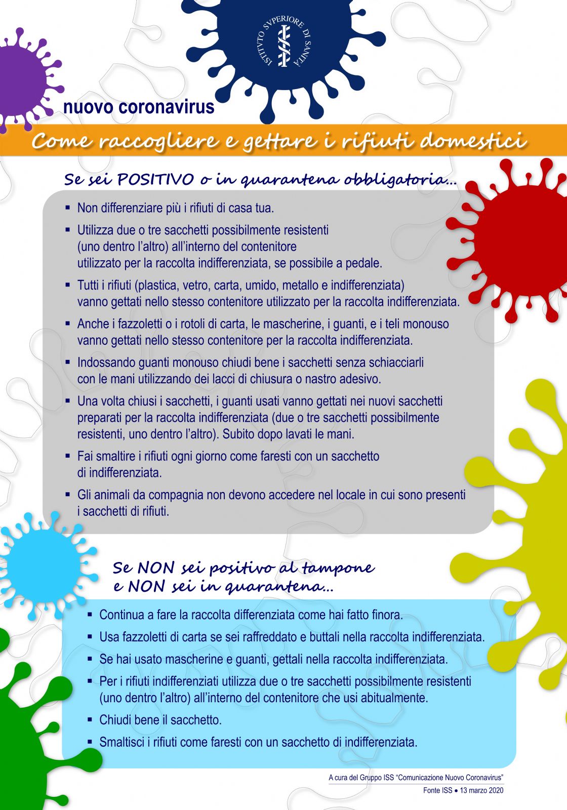 Tutti gli altri invece devono continuare a fare normalmente la raccolta differenziata con l’accortezza di gettare fazzoletti di carta guanti e mascherine nell’INDIFFERENZIATO.