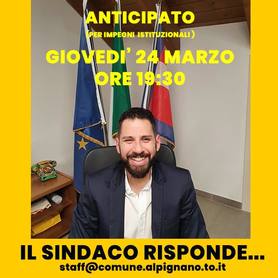 Questa settimana, in via eccezionale, la rubrica "Il sindaco risponde" è anticipata a giovedì 24 marzo sempre alle ore 19,30.