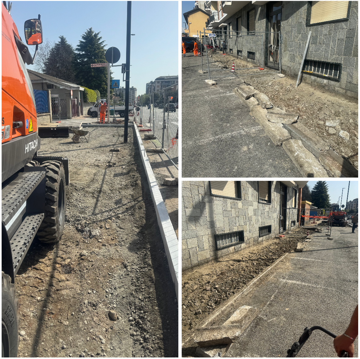 - demolizione vecchio marciapiede di via Cavour lato sinistro fronte ufficio postale;