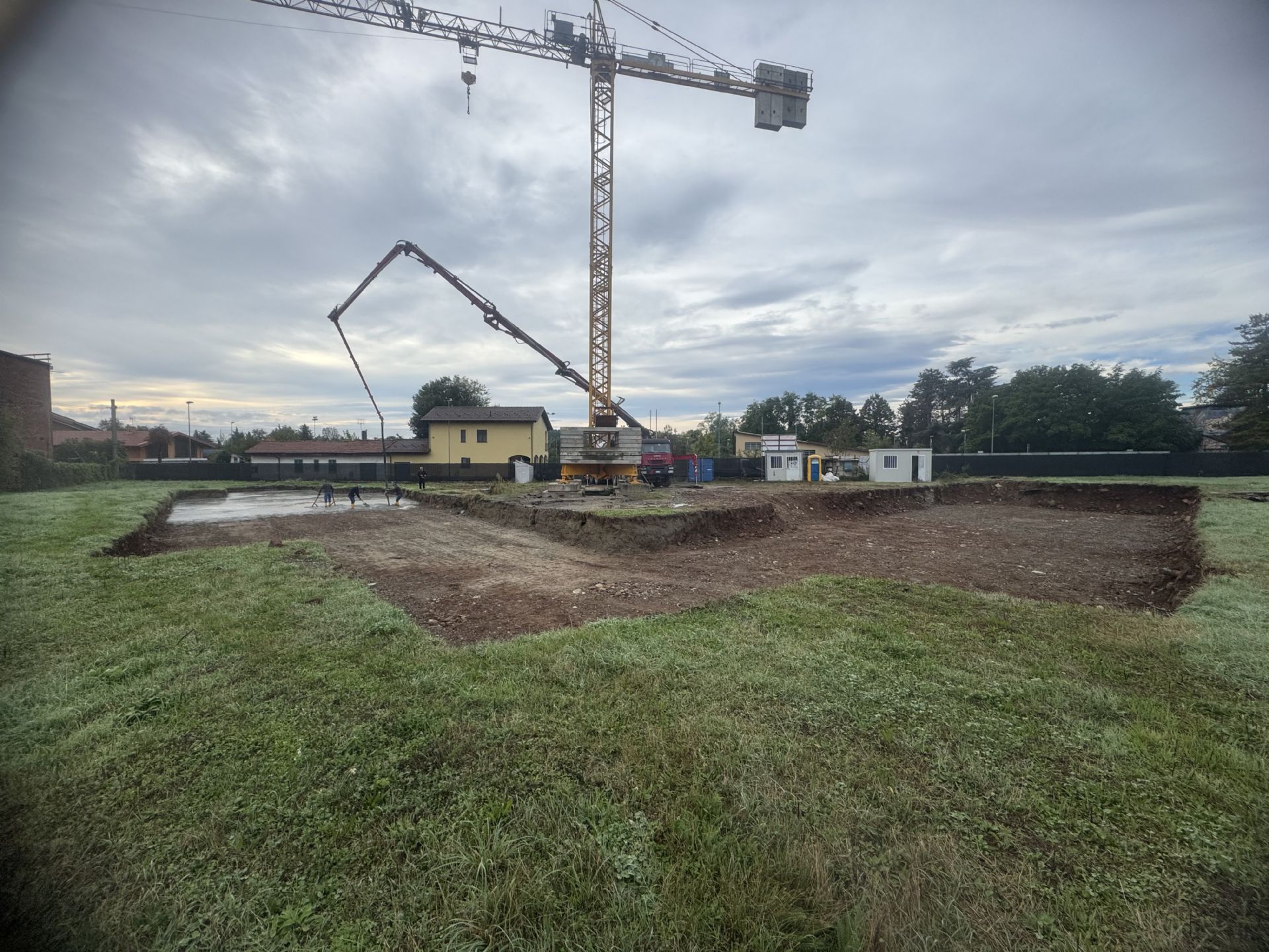 Oggi sono in corso i lavori di realizzazione del getto di pulizia o magrone all'interno dello scavo esistente.